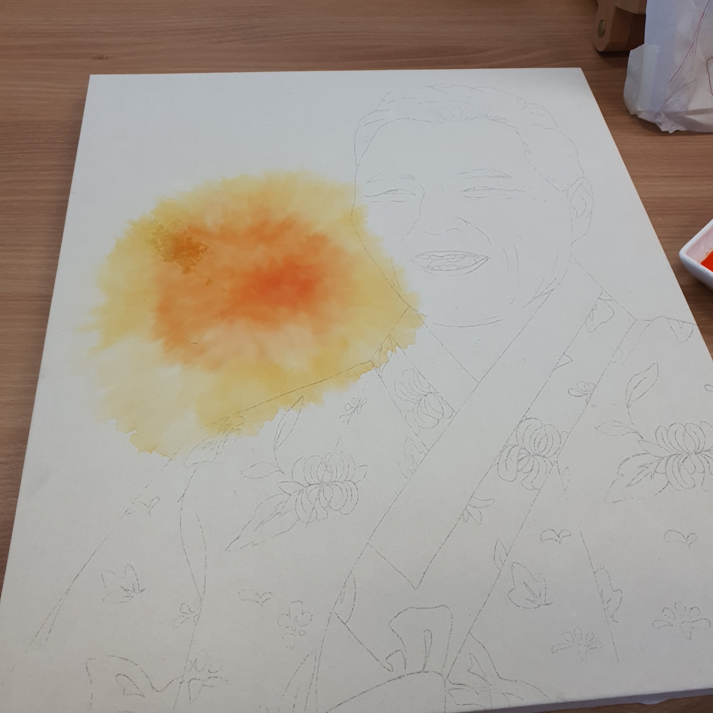 예전에 배운 수채화와는 매우 다른 느낌으로 색깔을 더해가고