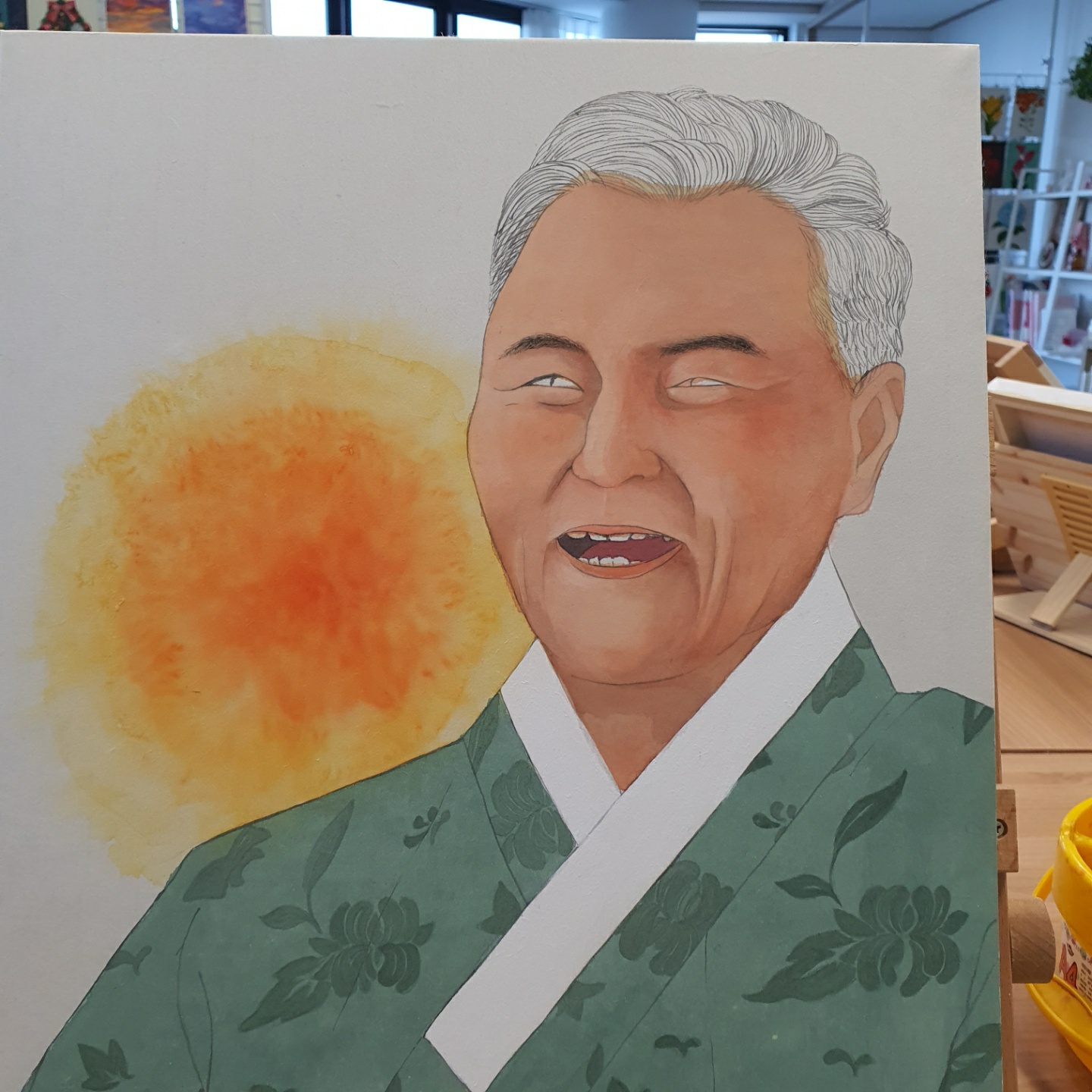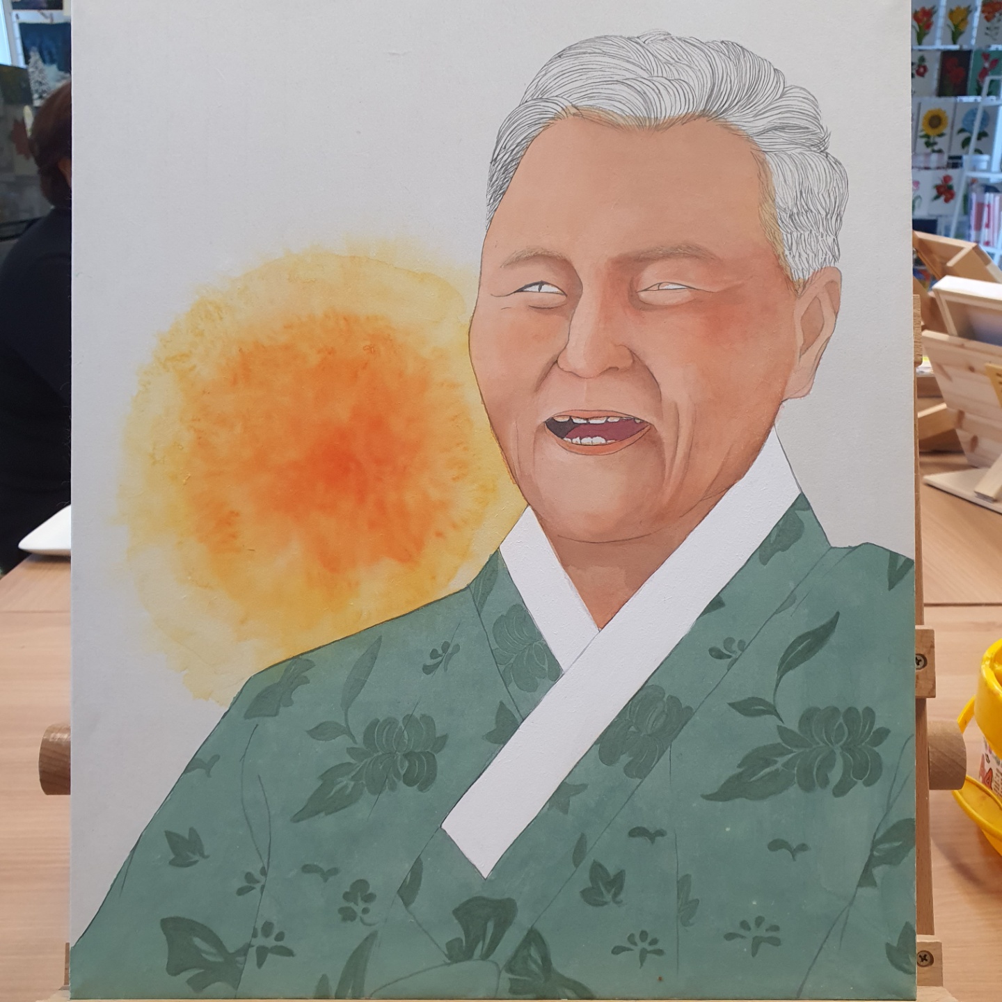 그래도 건강하고 화사한 아버님의 얼굴, 단아하고 새초롬한 한복 느낌까지 맘에 쏙 드는 작품 완성!